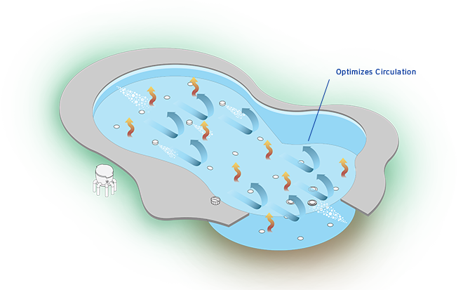 The ultimate accessory for your new pool. There are many brands of floor cleaning systems and we like this one, Caretaker In-floor cleaning systems. It collects water from the pool through the skimmer and returns it mechanically with the pump through a number of zoned areas in the pool. A designer from the manufacturer builds the plan to guarantee proper cleaning of the floor and steps and benches. No more ugly hoses in the way of swimming and better yet is no more vacuuming! We have the experience with the best.
