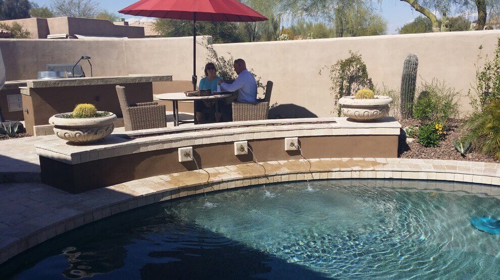 Diamond Coast Designs designed a wonderful back yard space that included all of our needs. It included reshaping our patio, adding a spa, and gas fire pit. Their landscape plan really finished it off great.