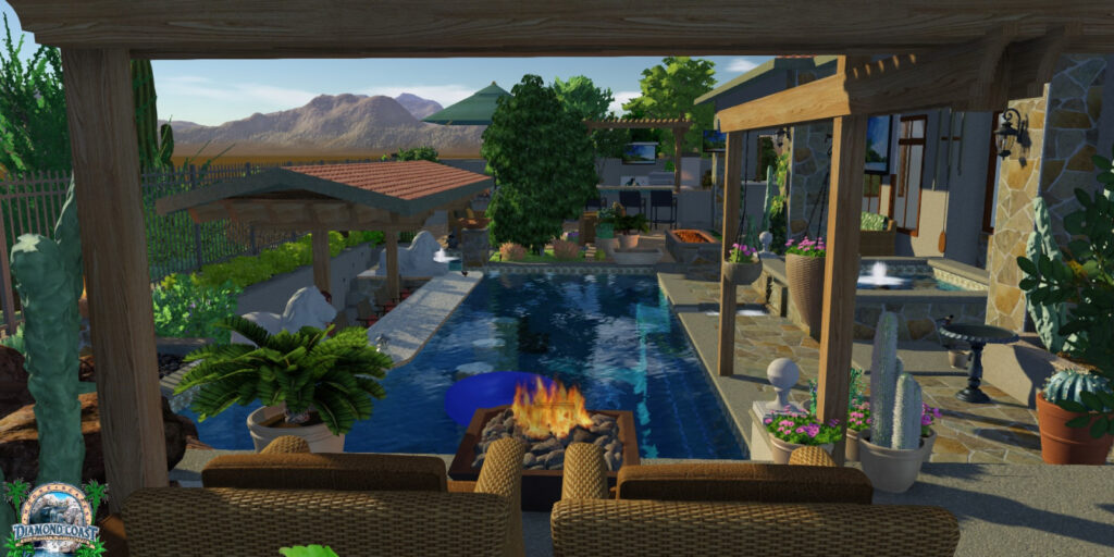 Diamond Coast Designs understands the importance of your home to you. As your partner in turning your dreams into a reality, Diamond Coast Designs will incorporate your unique style and life into your own personal and distinctive landscape and pool design. Every plan is unique and we can share it in 3D like these plans show!